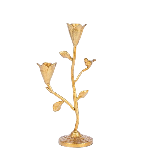 Gold Flowers + Bird Taper Candle Holder