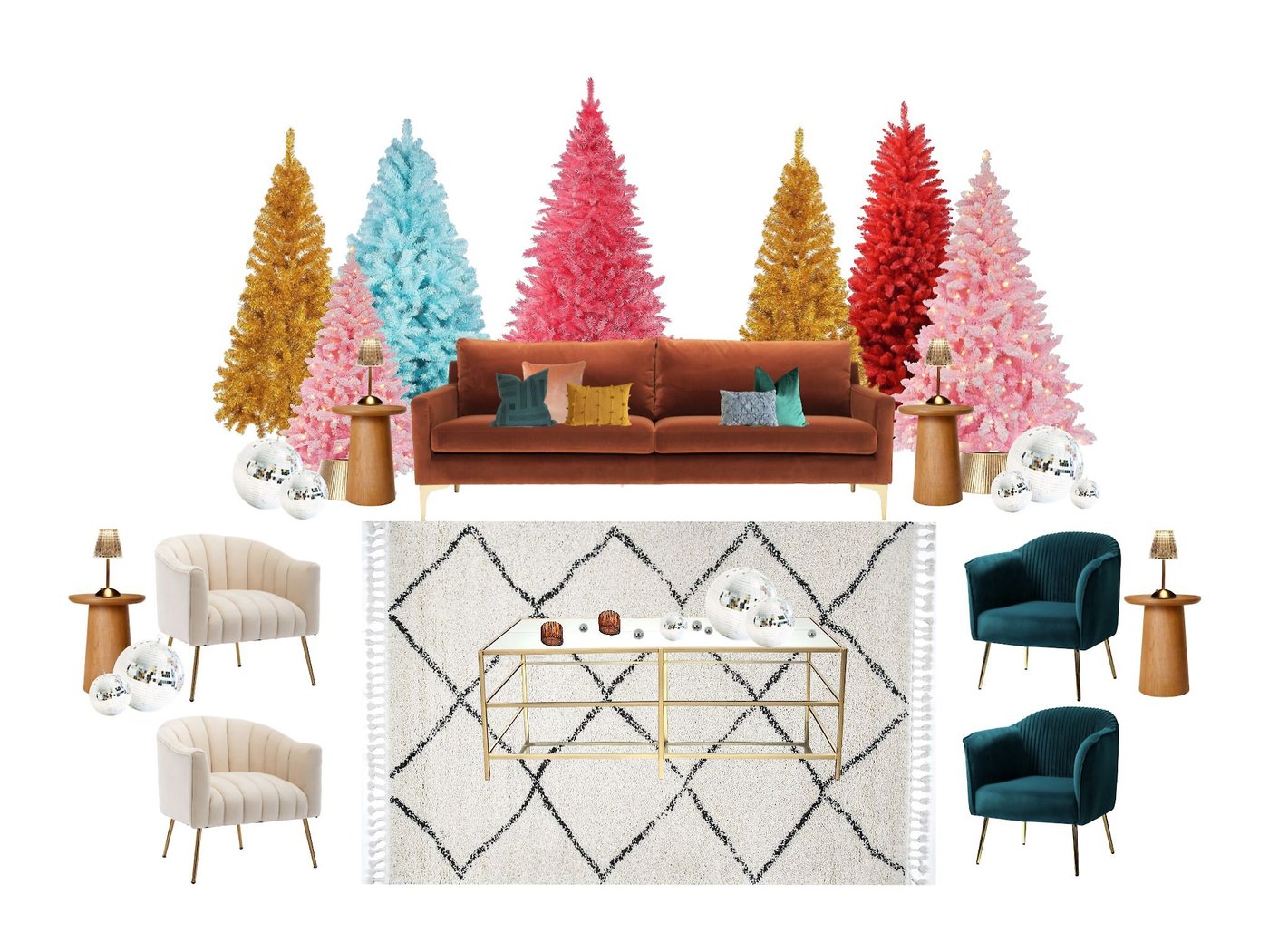 For a holiday celebration that's as colorful, fun, and sparkly as it is comfortable, the Holly Jolly Lounge is for you!